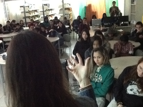 No encontro, ela falou das características dos empreendedores, do contexto, das dificuldades e deu exemplos bem sucedidos. Ao todo, 65 alunos do Ensino Médio participaram do encontro. A estudante Hilmara Fernandes, 16 anos, que fez o pedido, está animada com o entusiasmo dos alunos. “Agora vamos usar isso para tentar construir um app que melhore a comunicação entre alunos, professores e a escola”, comentou.