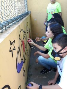 Grafiteira voluntária e estudantes dão nova cara a muros de escola