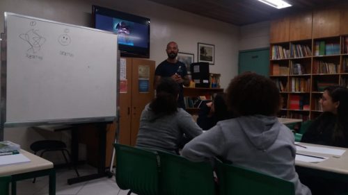 Gabriella é formada em Jornalismo pela Universidade de São Paulo e atualmente é mestranda, também pela USP, com um projeto sobre sexualidade e educação. No começo, ela conversou com os alunos sobre alguns métodos contraceptivos, como a camisinha, o anticoncepcional e a pílula do dia seguinte, apontando algumas questões sobre o uso desses recursos e também perigos, reflexões e cuidados para com eles. Durante a conversa ficou explícito que as informações sobre esses métodos contraceptivos chegam até os alunos, então, por que ainda temos casos de gravidez na adolescência?