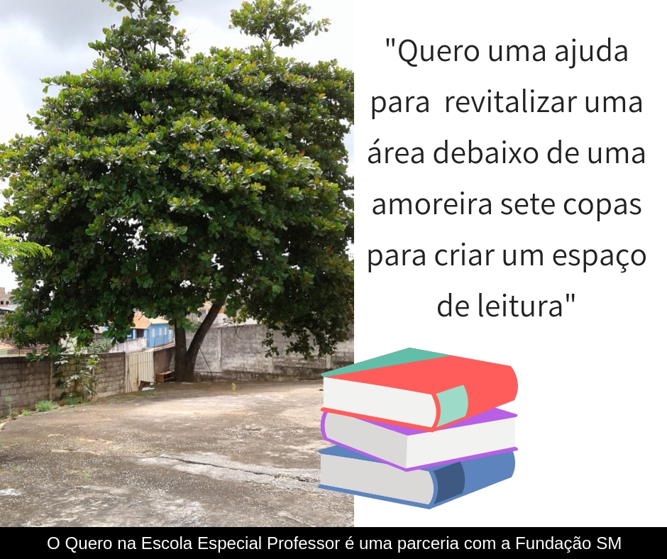 Professora de português há 20 anos, Maria Ilza Melo se esforça diariamente para envolver seus alunos, fazer com que eles aprendam o máximo. “Sou funcionária pública e estou a serviço do meu cargo. Gosto de desafios, dou sempre o melhor de mim”. Foi por isso que ela pediu recentemente transferência para a escola estadual Antônio Carlos de Carvalho, em Bom Sucesso, Minas Gerais, uma unidade mais afastada do centro e num bairro mais pobre. “Quando cheguei na escola senti que precisava resgatar a autoestima dos alunos, dar a eles a esperança de alçar voos maiores”, conta. Para isso, teve a ideia de fazer um projeto que uniria sua paixão pela literatura com a revitalização de um espaço da escola. “A escola tem uma amoreira sete-copas linda, num espaço vazio, pouco usado. Transformar aquele lugar numa área de leitura iria valorizar a escola e a literatura. Meu objetivo logo ficou claro, mas não sabia como fazer, por onde começar”, conta.