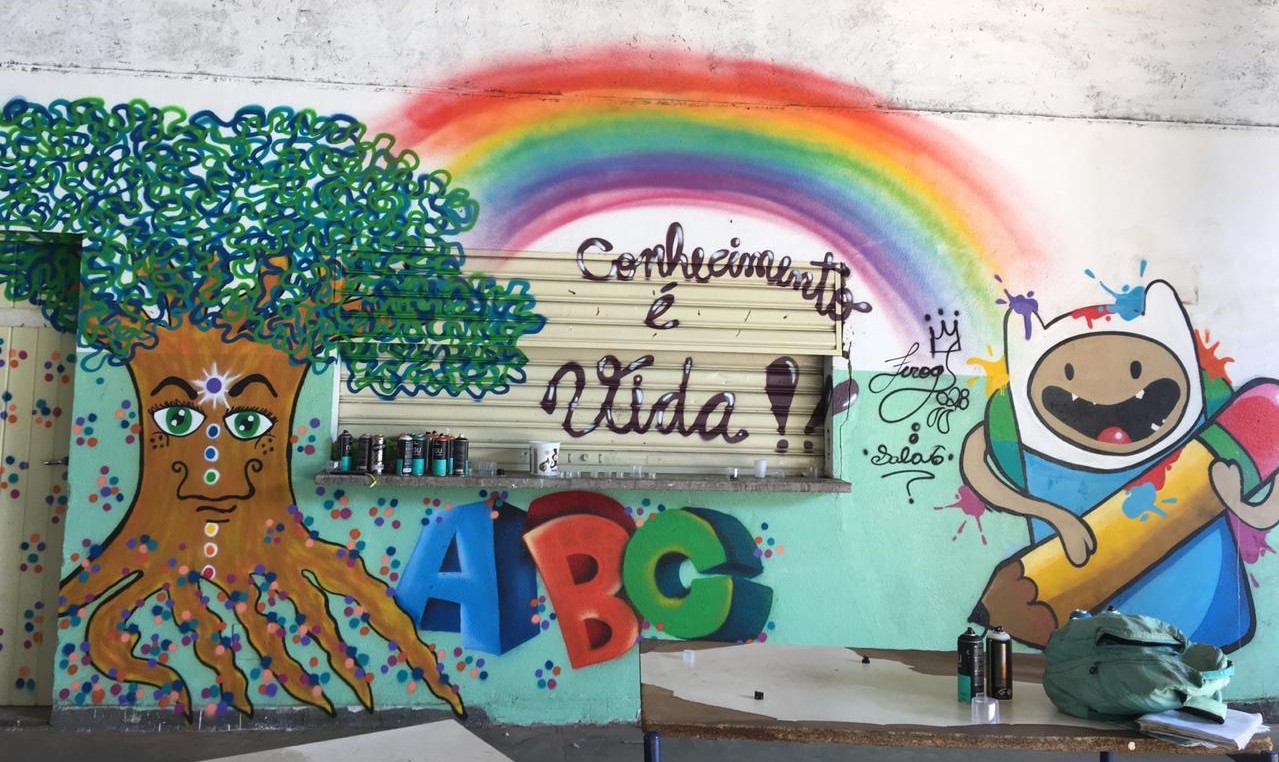 Artistas grafitam escola em Diadema e alunos falam das obras