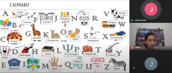 Juliana Becker é psicóloga de formação e fala francês fluente, além de ter se aproximado da cultura francesa. Entre maio e junho, ela fez duas aulas introdutórias sobre a língua, com o básico do alfabeto e também dicas para continuar a estudar de maneira autônoma. A primeira turma atendida foi a pedido da estudante Rafaela Cristina Silva de Almeida, de Araranguá, em Santa Catarina. A segunda turma foi a pedido do aluno Jhone Carvalho Silva, de Niterói, no Rio de Janeiro.