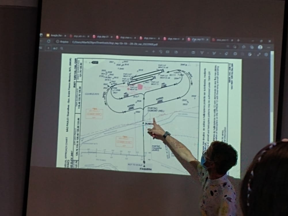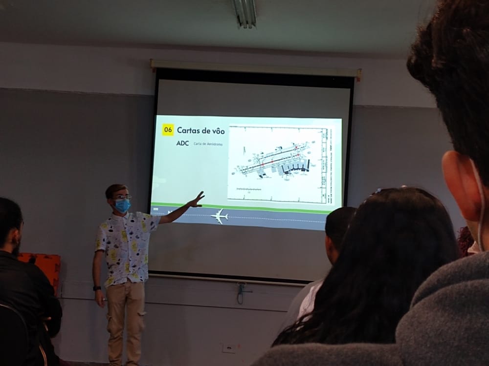 O autor do pedido foi o estudante Gustavo Luiz Cassemiro Goldoni da escola estadual Milton Cernach. “Eu queria entender o que acontece quando os aviões se cruzam no ar”, contou. Nosso voluntário explicou que um avião vai um pouco pra mais pra cima pra deixar o outro passar, tudo coordenado desde a saída e com possibilidade de ajustes durante o caminho. Por mais simples que fosse a informação, tratar de um tema tão próximo deles e diferentes foi marcante. Adoraram saber também que as aeronaves têm buzinas.