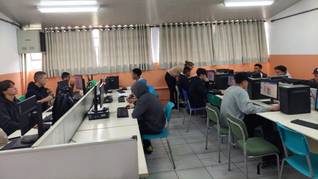 Uma delas foi por atividade de programação, um pedido do Enzo Rudolf Cughele, do 3º ano do Ensino Médio. Conseguimos localizar uma voluntária que toparia realizar a ação. A Adriana Lippi, oceanógrafa, programadora web e moradora de Pinheiros, também na zona oeste de São Paulo, foi até a escola. Contamos com a articulação da coordenação e colaboração de professores no momento.